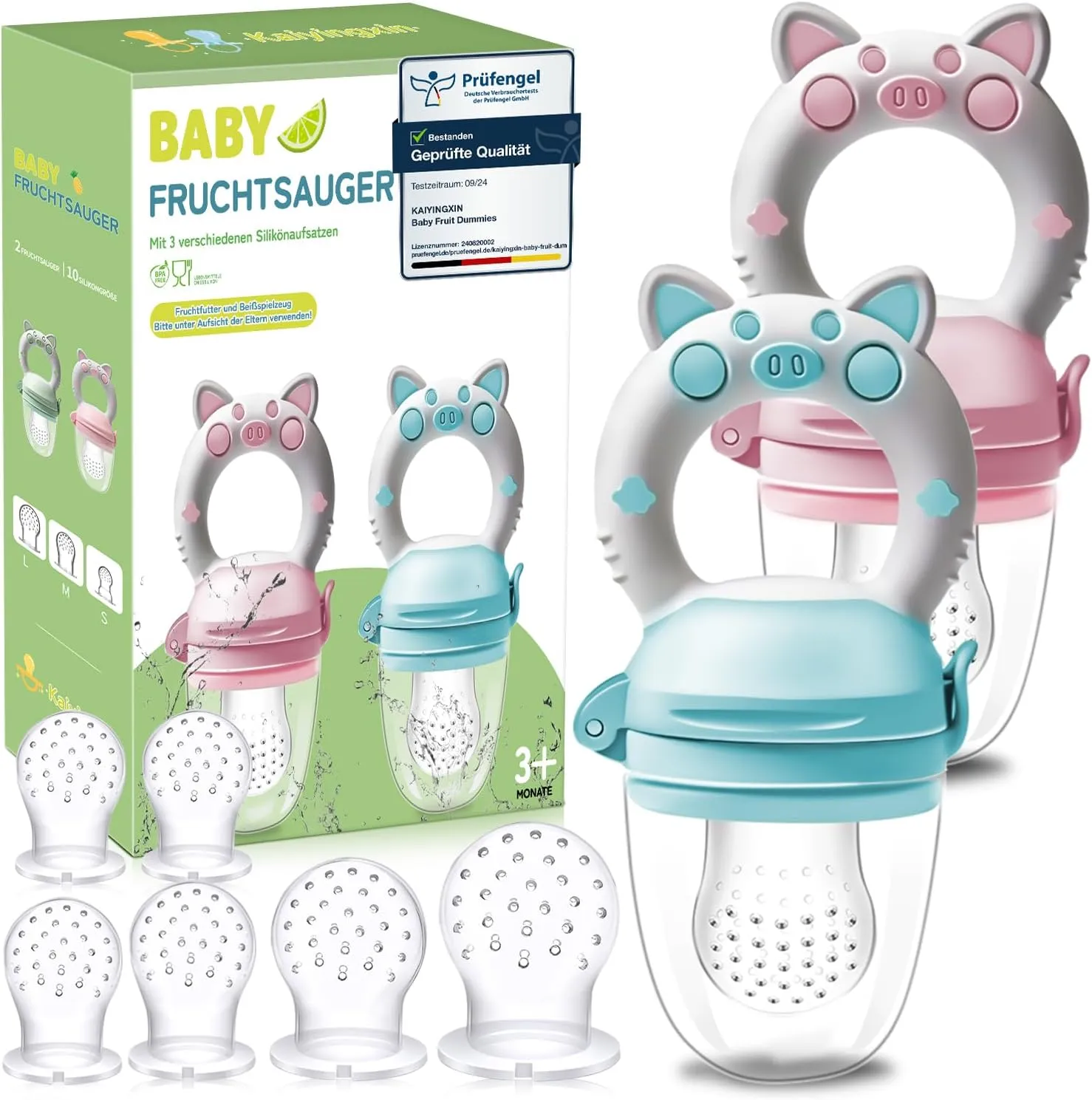 Chupeta para fruta bebé, 2 alimentador anti-afogamento 8 tetinas de silicone